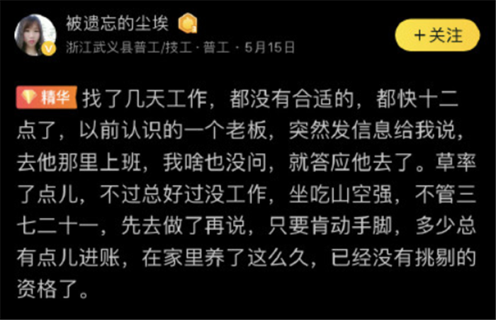 有人工作为了梦想,有人工作为了实现个人价值,有人工作,真的就是为了挣钱生存,你永远无法想象,他们找工作的姿态能有多低。